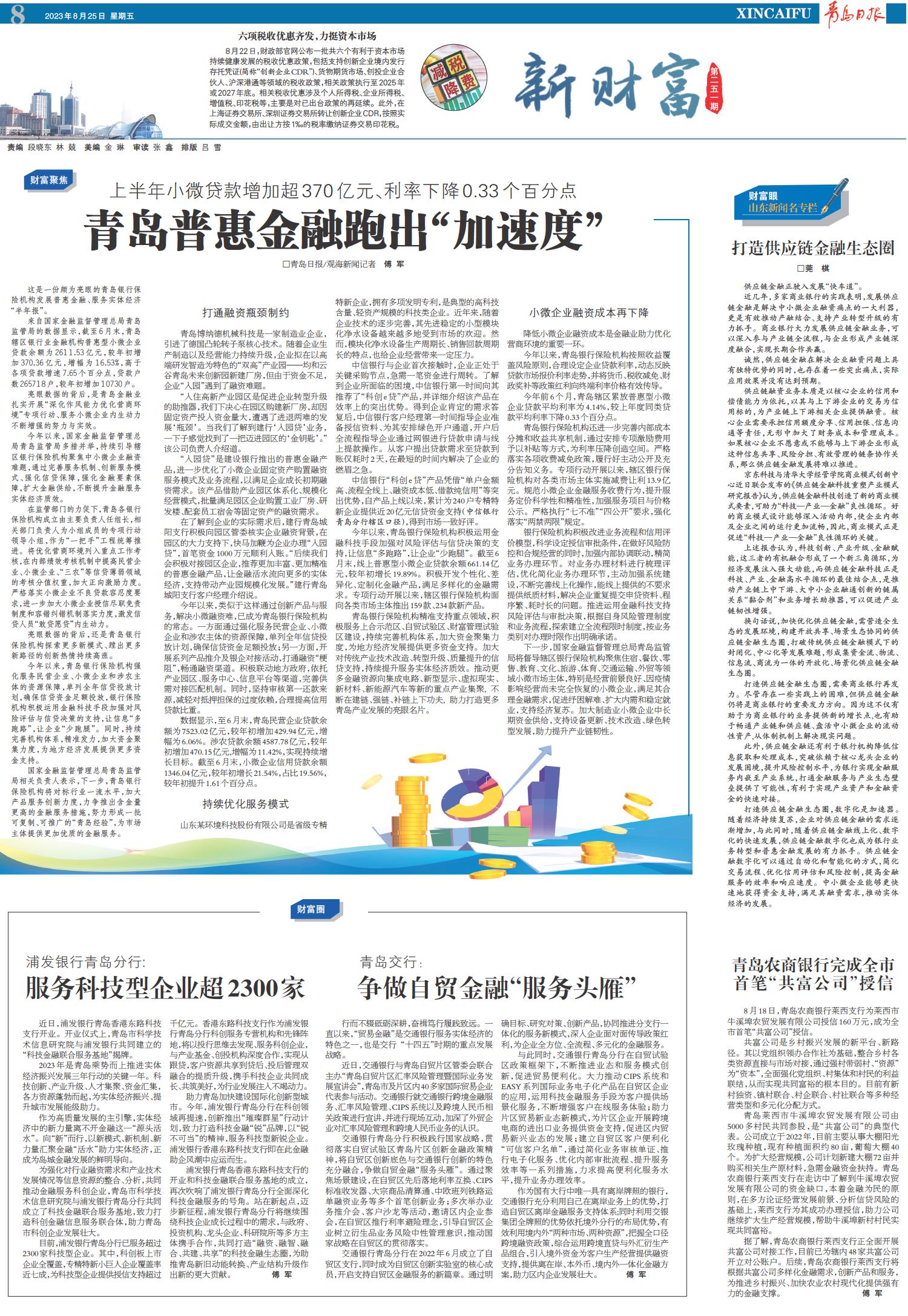 青岛普惠金融跑出“加速度”
