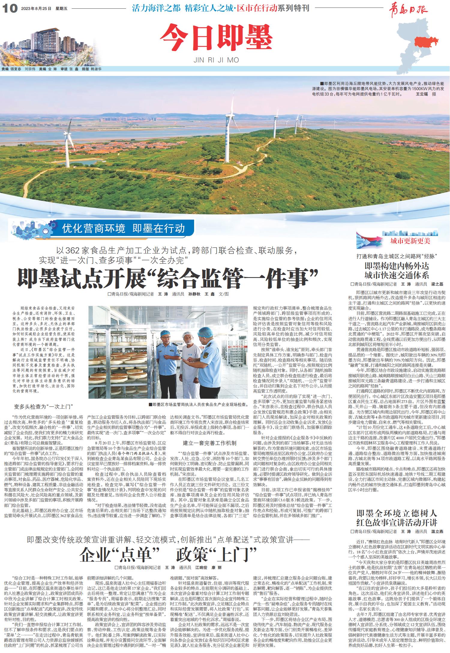 即墨试点开展“综合监管一件事”
