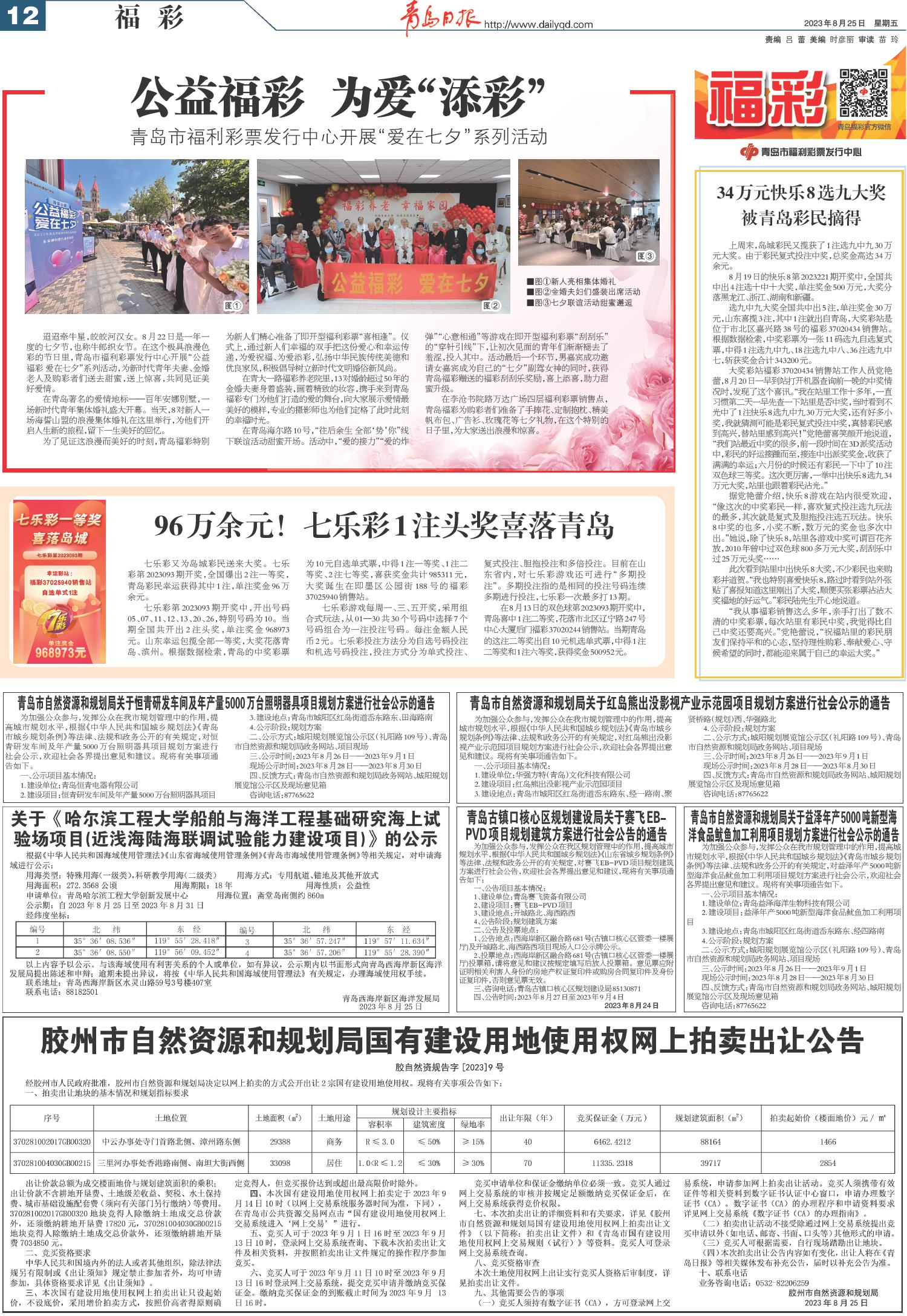 96万余元!七乐彩1注头奖喜落青岛