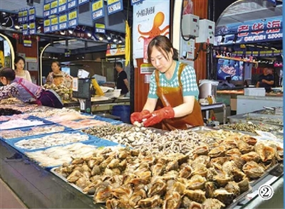 坐落于莘县路的小港水产品市场,宽敞明亮、干净整洁,各式各样的鲜活海产品分门别类、一目了然。整个市场的硬件设施、周边环境及内外经营秩序都有很大改善,大大提升了市民购物的舒适度。