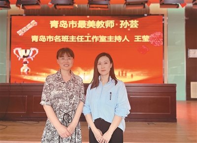 ■青岛市最美教师孙芸(左)和青岛市名班主任工作室主持人王莹。