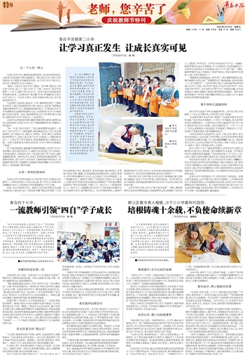 “从父辈那代算起,家里从事教育工作的已有六人。从小耳濡目染下,我也立志当一名光荣的人民教师,像父辈那样为人师表、教书育人,赢得桃李满天下!”从教11年,崂山区沙子口小学教师刘国萍早已成为资深班主任,仍不忘育人初心。不论带哪个班,她无一例外受到学生的爱戴。从青年教师到如今的崂山区教书育人楷模,她始终在教书育人的道路上用爱赋能,向光而行,用奋进与担当谱写教育的华章。