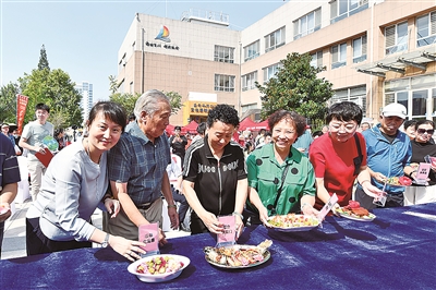 ■社区居民端来美味佳肴来到舞台前的餐桌旁,一同享受这场暖意融融的邻里百家宴。