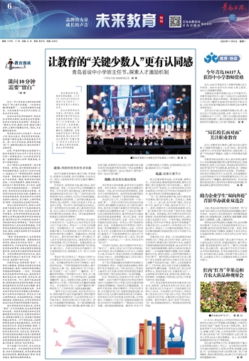 海尔学校校长孙先亮认为,为学生“留白”,不只是在课间,更应该贯穿教育的全过程。创造学生健康生活和自身发展的教育空间及生态,是教育的理性行为,需要各方教育人士、社会各个层面的积极主动作为。对于学校来说,应按照德智体美劳全面发展的要求,让学生在知识学习之外,有更多的阅读、思考、个性张扬的机会;对于教师来说,应当自觉给学生留出空间,文武之道,张弛有度,学习的过程就是调动人的身心各种要素共同作用的结果,优秀的教师总是给学生的思维培养创造有利条件,也总是以最少的甚至“零作业”来引导学生。