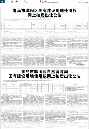 (六)本次拍卖出让公告内容如有变化,出让人将在《青岛日报》等相关媒体发布补充公告,届时以补充公告为准。