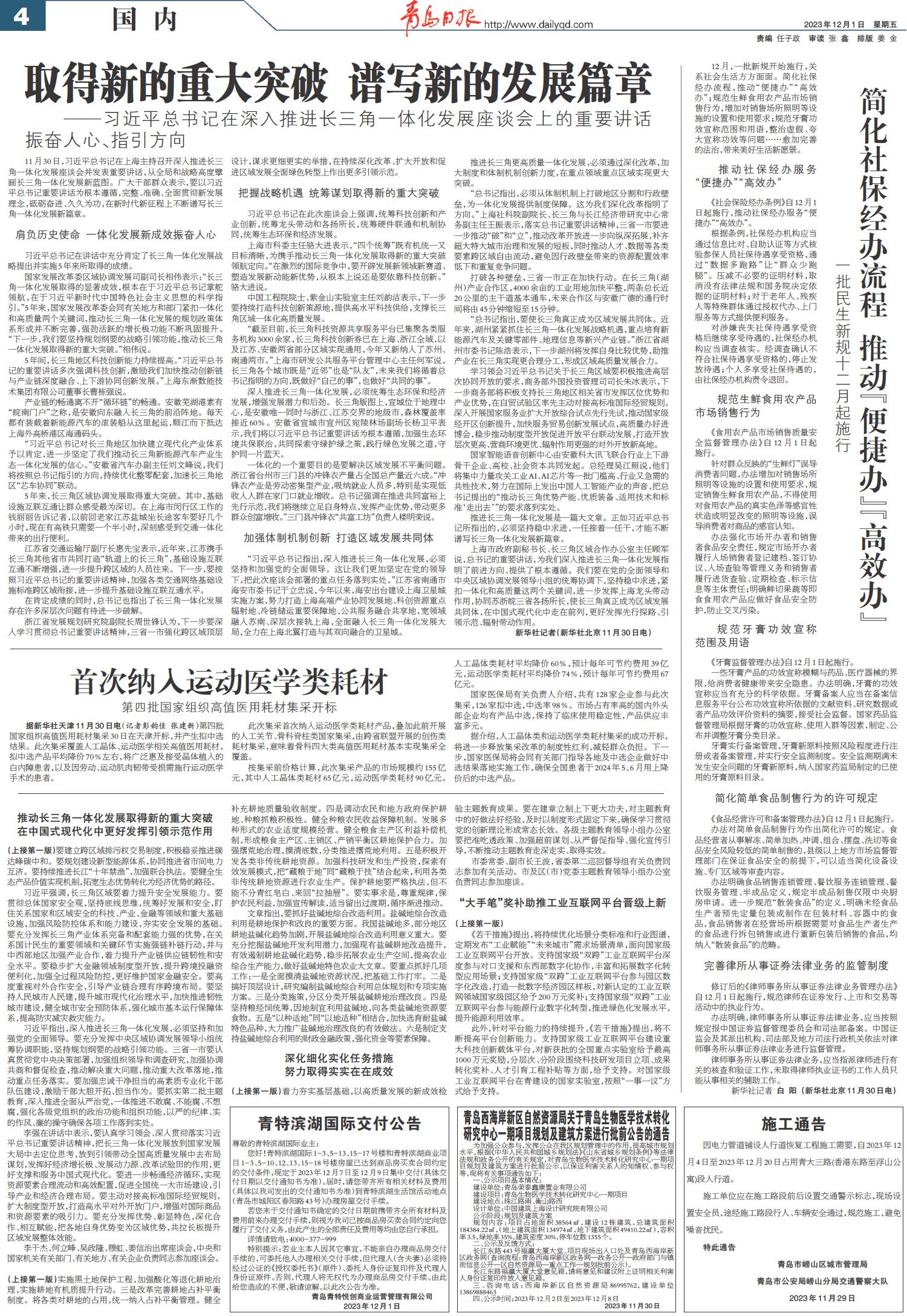推动长三角一体化发展取得新的重大突破 在中国式现代化中更好发挥引领示范作用