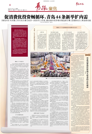 《行动方案》聚焦“深度挖掘消费潜力、推动消费扩容提质”“持续优化投资结构、全力扩大有效投资”以及“主动融入新发展格局、着力畅通经济循环”三个方面,对未来三年青岛加速释放内需潜力作出谋划和部署。