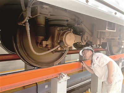 ■中车四方检维技术工程师刘洋正在对雅万高铁动车组进行日常维护检查。