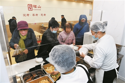 ■市北区关注老人康养事业,持续推动街道社区助老服务中心升级。图为受到周边居民欢迎的仲家洼社区助老食堂。 崔冬妮 摄