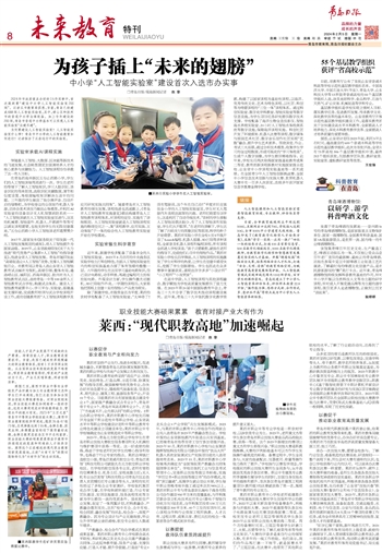 除了新建学校,市级资金还为平度、莱西的农村学校配备了人工智能实验室。“太神奇了!没有驾驶员,这个车在自己动!”平度市田庄镇张舍小学的人工智能实验室里,学生对无人驾驶汽车表现出浓厚的兴趣。老师任晓雷告诉学生,这是利用了自动寻线技术。“农村的学生接触人工智能场景比较少,有了人工智能课和实验室,学生们大开眼界。”在老师的讲解下,学生还了解了扫码支付的图像识别等原理,科学的种子开始萌芽。莱西市实验小学在全校1至5年级开设了Scratch编程、机器人搭建、3D打印等多种课程,全面普及机器人课程和编程课程,所有课程全部进入学校课表。“孩子只要敢想,就能在老师的指导下,完成他们心目中的智能作品。”莱西市实验小学校长吕学锋说,人工智能课程的实施激发了学生对科学的热爱,让学生在创意中感受快乐,挖掘了学生创新潜能。学生也因此在众多赛事中屡屡获奖,涌现出许许多多“小设计师”“小工程师”“小发明家”。