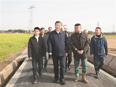 3月18日至21日,中共中央总书记、国家主席、中央军委主席习近平在湖南考察。这是19日下午,习近平在常德市鼎城区谢家铺镇港中坪村,同种粮大户、农技人员、基层干部亲切交流。 新华社照片