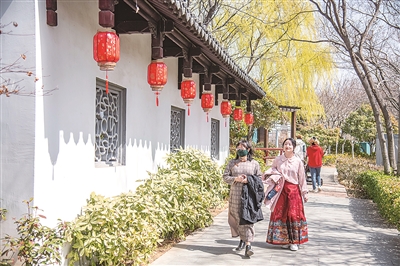 ■上图:市民游客在世博园踏青赏春。 杨志文 摄
