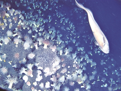 ■“蛟龙”号拍摄的海葵和深海鱼。 本版图片均由国家深海基地管理中心提供