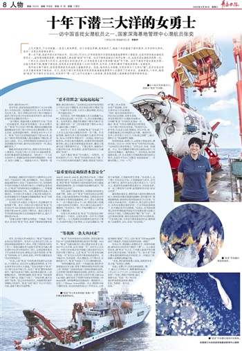 刚开始从事下潜时,张奕觉得潜航员是地球上最酷的职业。现在,她仍然认为很酷,但更加明白了之所以“酷”,是因为背后有众多力量来保障下潜成功。近日,完成下潜任务的张奕回到国家深海基地管理中心后接受了记者专访。在她看来,十年间,她驾驶“蛟龙”号下潜作业30余次,实现两个“第一次”,这不仅是她个人的荣誉,更是我国载人深潜事业持续升级的佐证。