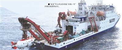 ■“蛟龙”号与其支持母船“深海一号”开展深海调查研究。