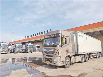 ■承担TIR“中俄快线”运输任务的车辆准备出发。