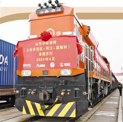 这是青岛中欧班列蓬勃发展的缩影。目前,22条国际运营线路通达23个上合组织国家和共建“一带一路”国家的54个城市,构筑起东连日韩、西接欧亚的国际物流大通道。通过班期化、常态化运营,开设新线路等方式,青岛中欧班列持续扩大辐射范围,安全稳定高效的国际陆路运输大通道正在为全面打造对外开放新高地提供有力支撑。从今年1月至4月数据看,青岛地区中欧班列开行262列。其中,上合示范区到发俄罗斯方向中欧班列149列,货值约8.2亿元,占总到发量的56.9%,主要出口货物为家电、汽车等机电产品,主要进口货物为橡胶和板材等原材料产品。