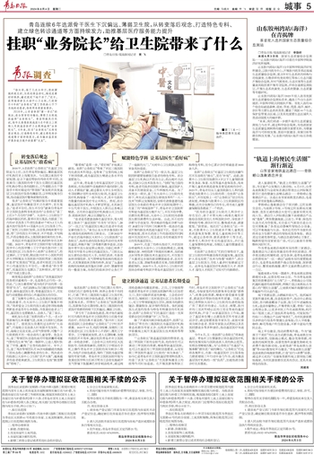 2018年,山东省参照“第一书记”的做法,在全国首创向偏远、薄弱卫生院选派挂职“业务院长”。青岛积极先行先试,每年从委属医院选派5名中级以上职称人员到基层医疗卫生机构挂职“业务院长”。6年来,30名“业务院长”从转变落后观念、打造特色专科、建立绿色转诊通道等方面持续发力,成为撬动基层医疗服务能力提升的重要“支点”。