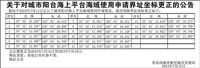 关于对城市阳台海上平台海域使用申请界址坐标更正的公告