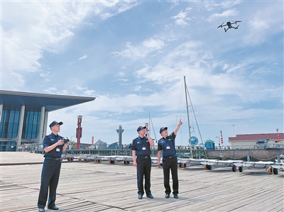 ■7月10日,青岛海事部门启动无人机滨海旅游空中巡航。