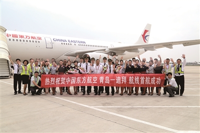 ■2019年6月,由东方航空执飞的青岛-迪拜航线开航。