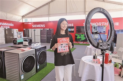■以旧换新促销活动现场,知名品牌开展现场直播。