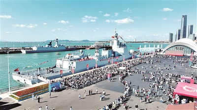 本报10月1日讯 为庆祝中华人民共和国成立75周年,1日,北部战区海军舰艇开放日活动在青岛举行。活动首日,3万余名民众来到奥帆中心码头和青岛港三号码头,零距离感受海军舰船的威武和海军战士的风采。