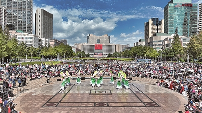 10月1日上午,“我和我的祖国”——2024热烈庆祝中华人民共和国成立75周年“欢乐四季”青岛市广场周周(天天)演系列活动在五四广场上演,男女二重唱《我爱你,亲爱的祖国》、群口快板《祖国好》等一个个精彩节目吸引了众多市民游客前来观看。王 雷 摄