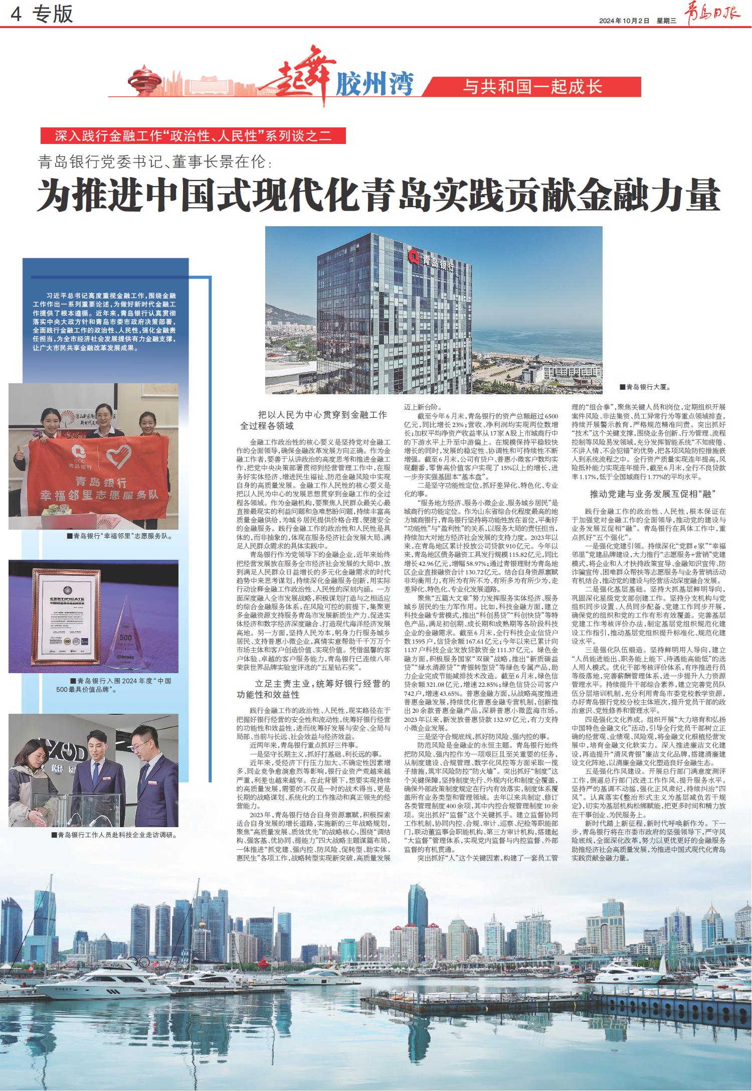 青岛银行党委书记、董事长景在伦:为推进中国式现代化青岛实践贡献金融力量