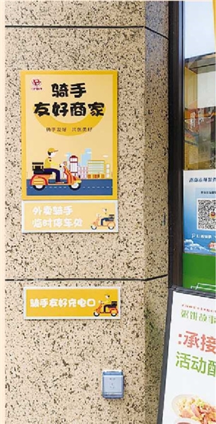 ■“骑手友好商家”门前设置了专属停车区和充电口。