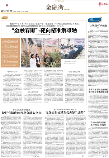 青岛,将金融服务于实体的思考凝结在一场场“春雨”当中,不断创新思路,以更为有效、更为精准的金融伙伴服务,探寻服务发展的“青岛路径”。