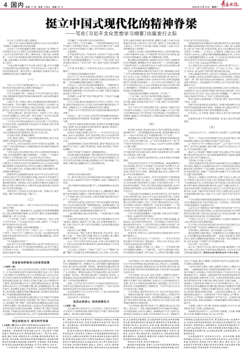 以光辉灿烂的中华优秀传统文化阐明民族根和魂所在,以激昂向上的革命文化和生机勃勃的社会主义先进文化提振民族精神,中国式现代化必须有永远挺立的精神脊梁。