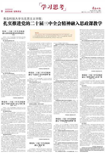 近期,青岛科技大学与山东省学校思政课教指委联合举办“学习贯彻党的二十届三中全会精神学术研讨会”,深入探讨如何将党的二十届三中全会精神融入思政课、守正创新推进思政课内涵式发展等问题,并形成以下部分文章。