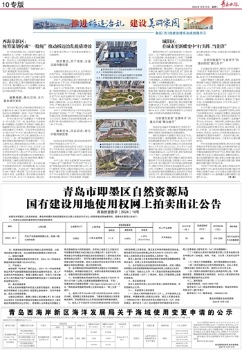 对“840重点片区”违建整治工作提格督办,专人负责,下沉一线、直击现场,从违建拆除、环境整治、改造提升等方面逐个击破,着力构建横向到边、纵向到底、责任明确、信息共享的综合整治工作体系。在全市率先完成193处“重点片区”和33处“重点督导片区”整治任务,拆除违建54.68万平方米,清理垃圾3.76万立方米,“一地一策”推动城市空间活化利用,做好资源环境承载利用“后半篇文章”。千山北路徐戈庄、薛家岛街道长江西路、五台山路与桓台东路交叉口等43个点位,先后导入总投资约757亿元的融合光电、潍柴重工、青岛大学医学医疗中心等43个产业项目;对黄河路高架桥周边等长期闲置的30处废弃地块,分批次规划建造口袋公园、城市绿地、雕塑小景等景观,让城市品质的底色更足。
