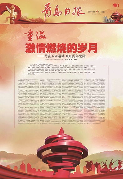2019年是五四运动100周年。五四运动源起青岛,为纪念这一重要时间节点,青岛日报5月4日推出五四运动100周年封面版。