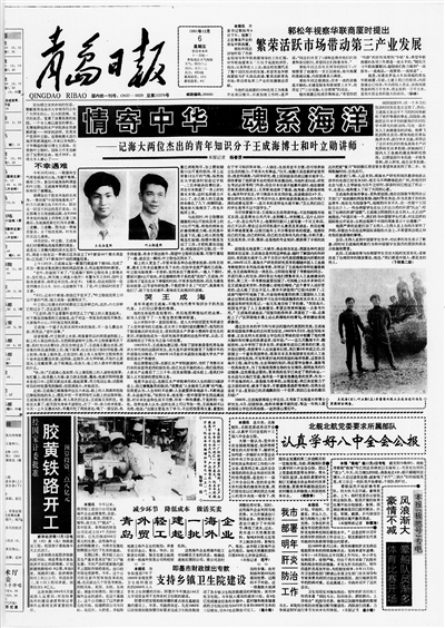 通讯:《情寄中华 魂系海洋——记海大两位杰出的青年知识分子王成海博士和叶立勋讲师》