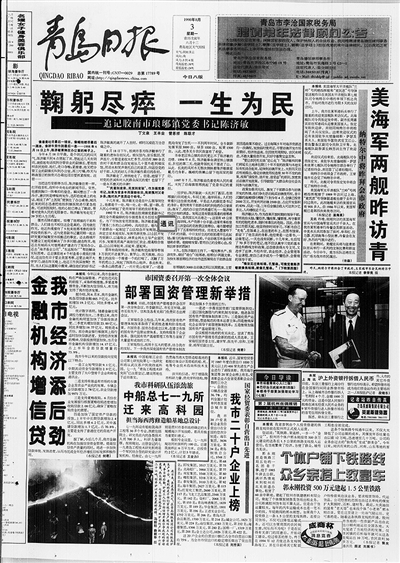 2005年1月,中国科学院资深院士、世界著名海洋生物学家曾呈奎教授逝世不久,《青岛日报》一版连续三天刊发系列通讯《蔚蓝色的丰碑》《海一样的胸襟》和《赤子的情怀》,以平民的视角,立体展现了知识分子的楷模曾呈奎不平凡的一生。