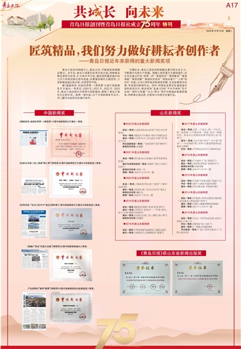 继《振超效率:赶超世界第一》荣获第14届中国新闻奖文字通讯一等奖后,2020年、2021年、2022年、2023年,青岛日报连续四次获得中国新闻奖,刷新了青岛日报社历史新纪录。值得一提的是,四个中国新闻奖作品中,有三篇作品是舆论监督代表作。