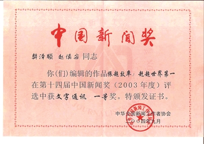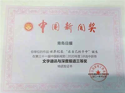 《世界纪录:“在自己的手中”诞生》荣获第31届中国新闻奖文字通讯与深度报道三等奖。