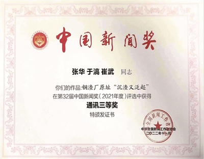《钢渣厂原址“沉渣又泛起”》荣获第32届中国新闻奖通讯三等奖。