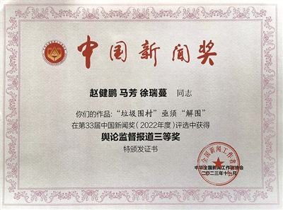 《“垃圾围村”亟须“解围”》荣获第33届中国新闻奖舆论监督报道三等奖。
