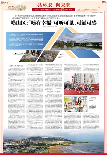 民之所盼,政之所向。回溯过往,崂山区建区以来,始终把保障和改善民生作为一切工作的出发点和落脚点,不断满足人民群众对美好生活的向往。接下来,崂山区将持续在群众关注的教育、医疗、体育、养老、文化等公共服务领域加大投入力度,持之以恒擦亮“崂有善育”“崂有优学”“崂有健康”“崂有颐养”“崂有安居”“崂有众扶”6张民生名片,让“崂有幸福”更加可听可见、可触可感。