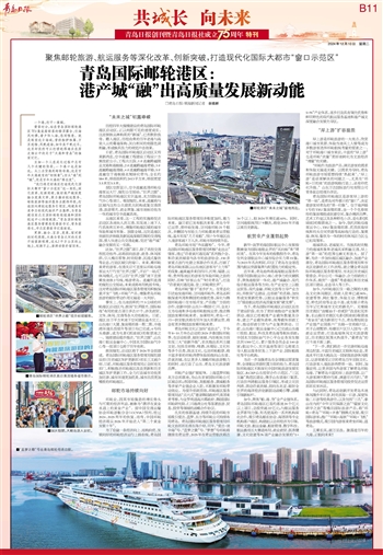如今,聚焦“船、港、货”全产业链体系,青岛国际邮轮港区已签约落地20个亿元以上项目,总投资超22亿元;与航运服务业界影响力强、知名度高的一系列机构深化合作,吸引青岛船长协会、海团联等专业机构落户港区,构建起以总部经济为引领,邮轮文旅、航运金融、船舶管理、数字科技、航运教培五大赛道布局,商业商贸、医养健康、文化创意等N项产业融合发展的“1+5+N”产业体系,逐步打造具有领先优势和鲜明特色的现代航运服务基地和港产城文深度融合发展先导区。