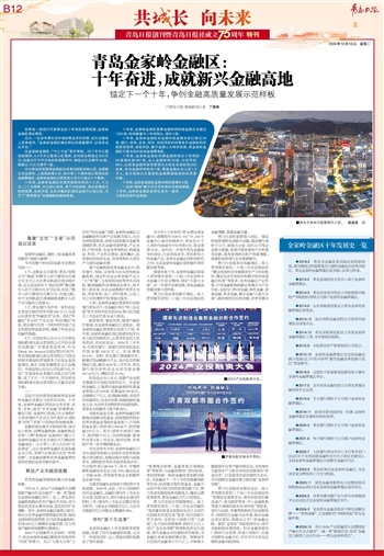 十年间,金家岭金融区全面贯彻落实党的十八大、十九大、二十大精神,牢记初心使命,勇于开拓进取,逐步发展成为机构集聚、业态丰富、生态完整的区域性金融中心核心区,书写了“财富青岛”加速崛起的靓丽答卷。