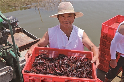 ■姜山养殖户在捕捞小龙虾。