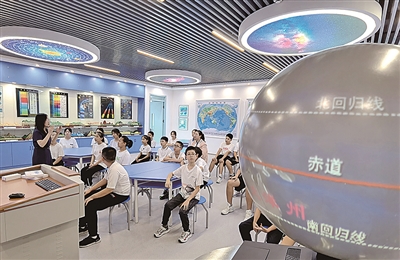 ■中国海洋大学附属学校的孩子们在上地理课。