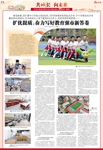 新建、改扩建中小学幼儿园232所,107所新建学校高起点办学;全市组建235个教育集团,实施72名优秀校长“一长多校”办学模式,小学集团化办学覆盖率达到85%;53所学校实施初中强校提质行动,一批教育新高地加速崛起;区市级及以上骨干教师达2万余人,优质师资实现倍增……2022年,青岛市委、市政府印发《青岛市基础教育优质资源倍增三年行动计划》,实施教育强区(市)建设、新校高位发展、初中强校提质、特色高中创建等十大行动,加快基础教育扩优提质。