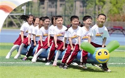 ■青岛育新小学的孩子参加学校趣味运动会。