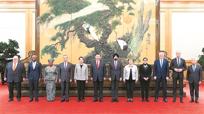 习近平同主要国际经济组织负责人合影留念,感谢他们长期支持中国现代化事业。