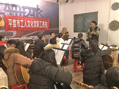 ■平度市职工夜校在壹滕吉他琴行开展吉他培训课程。